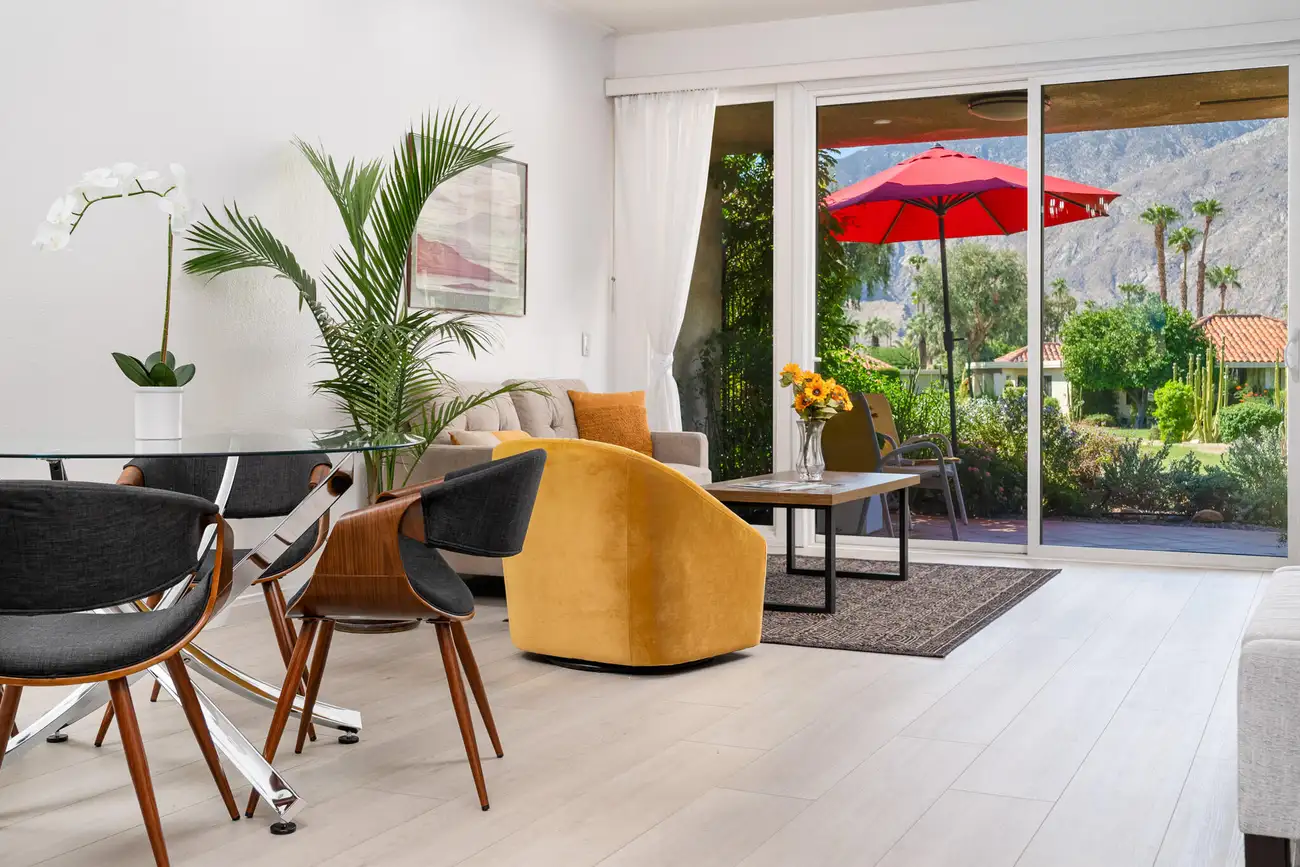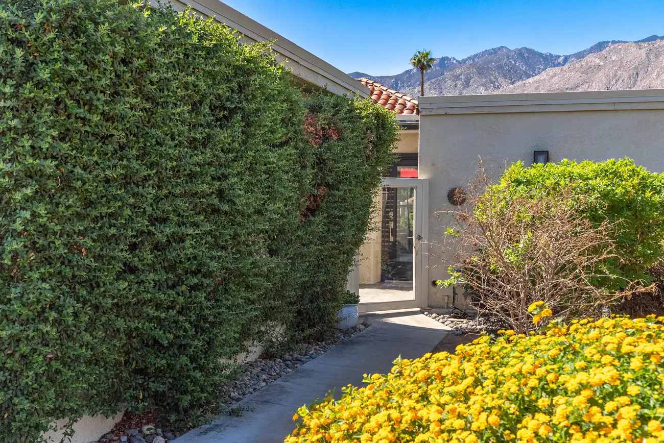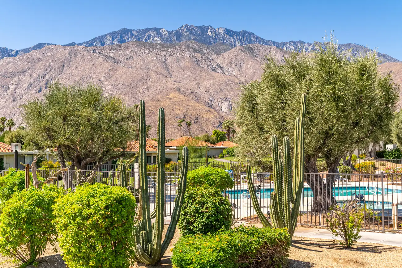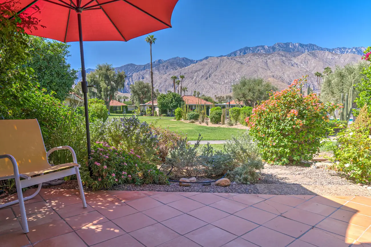 West-facing recently renovated 2 bed / 2 bath condo with the best view in the complex. Located on a quiet cul-de-sac in the Sunrise Alejo community and on fee simple land (you own the land). 719 N Seville sits atop a rolling hill with sunning unobstructed mountain and greenbelt views from living room, primary bedroom and covered patio. This beautifully maintained community of 106 homes is situated on 20 acres and is located in central Palm Springs with 3 pools, 3 spas plus recently resurfaced Tennis and Pickle Ball courts. Home updates include new dual-glazed Jeldwen windows & sliders, water filtration system and HVAC. The meticulous kitchen renovation includes new quartz countertops, stainless-steel appliances, soft-close kitchen cabinets, as well as new flooring throughout. Attached 1 car garage is also included with direct access and an additional storage closet. Just minutes to downtown Palm Springs, convention center, casino, aquatic center, library, museums and PSP airport.